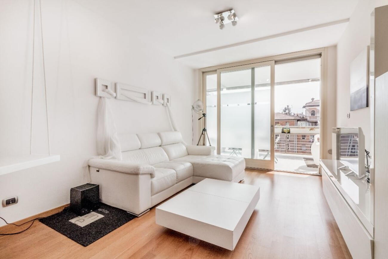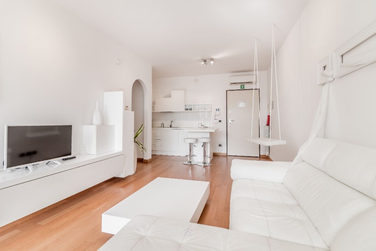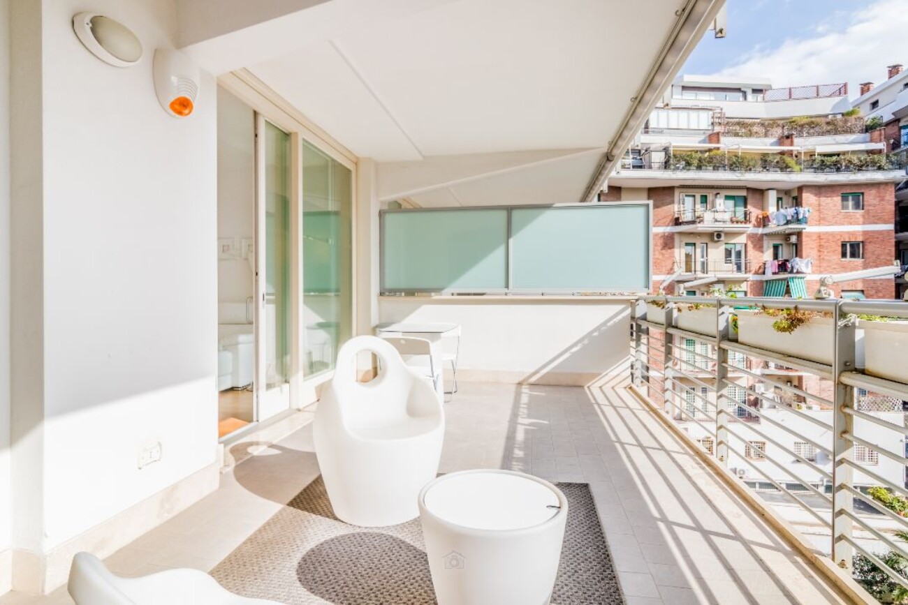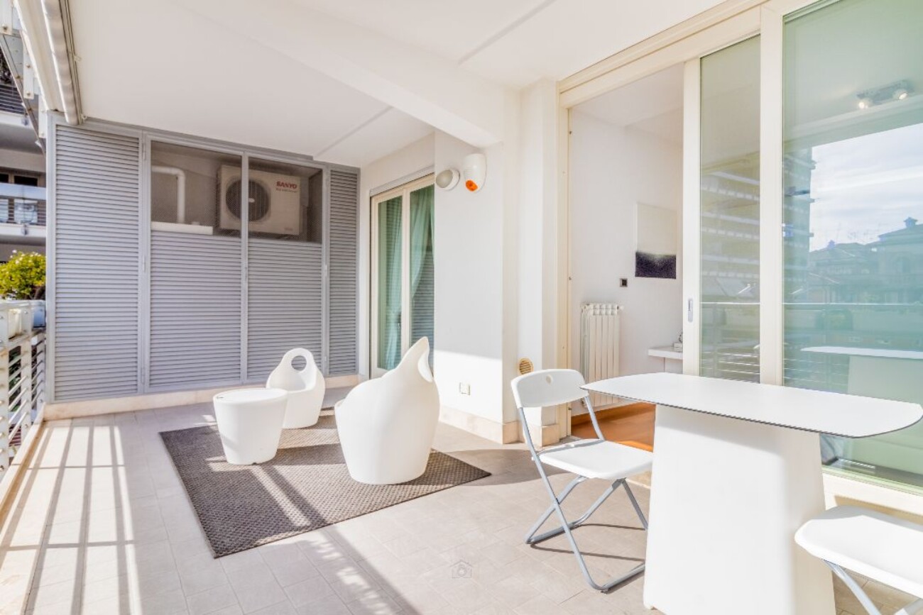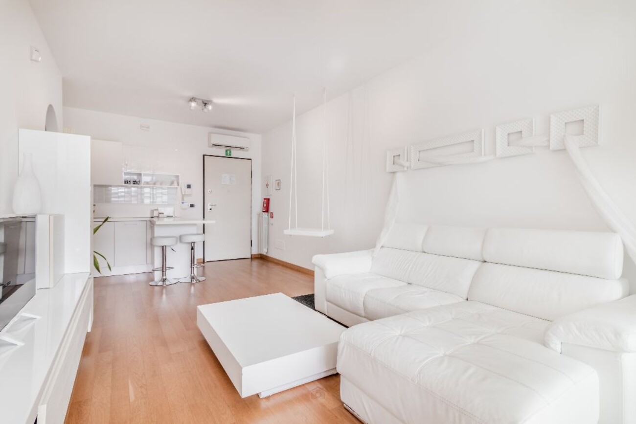 L’appartamento è composto da soggiorno con angolo cottura, camera da letto, ampio bagno con doccia e finestra, terrazzo abitabile di circa 25 mq. L’appartamento è dotato di rifiniture di pregio: aria condizionata, parquet in tutte le stanze, impianto allarme, portone blindato, impianto di riscaldamento autonomo con caldaia di ultima generazione con doppia alimentazione (metano e solare), videocitofono.