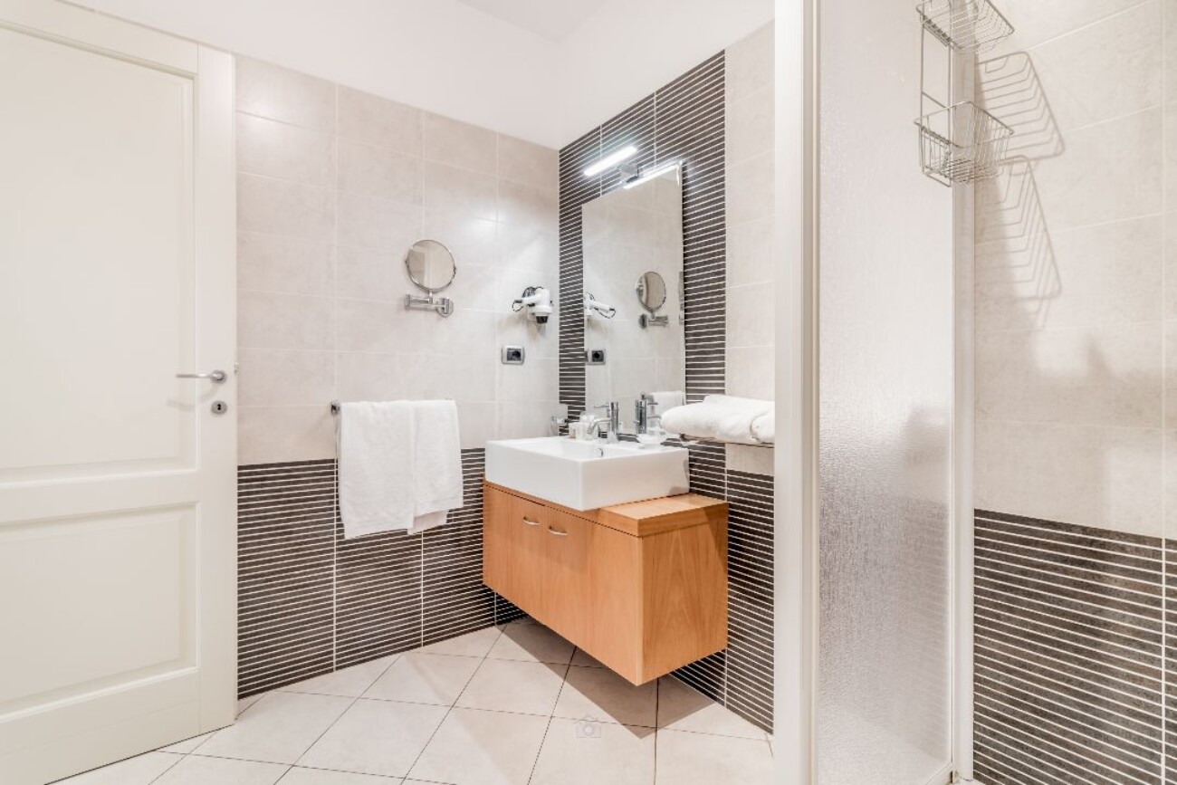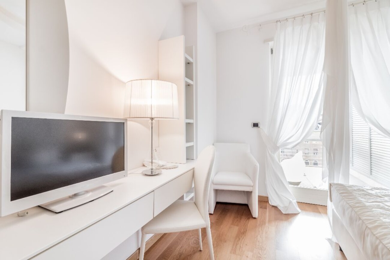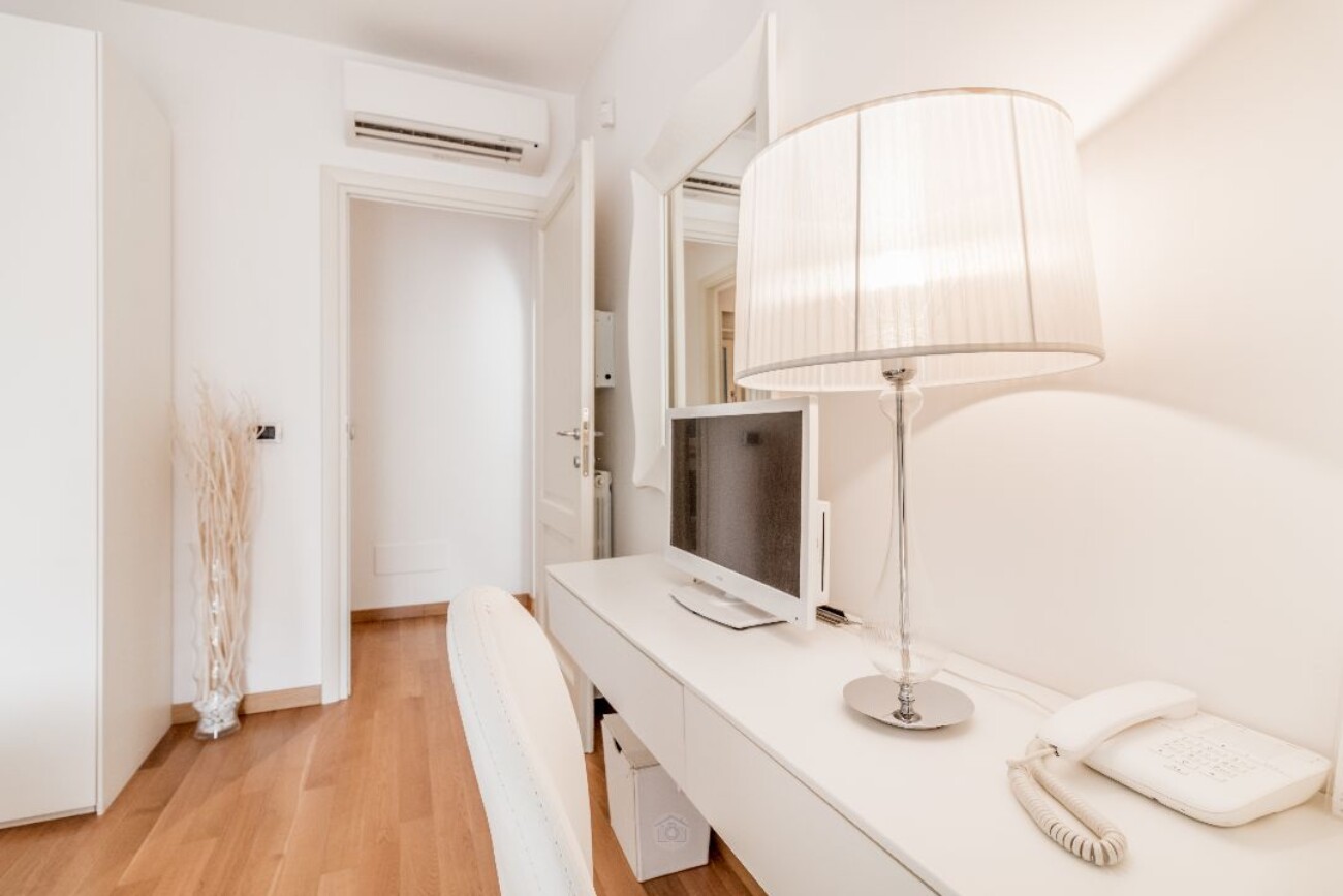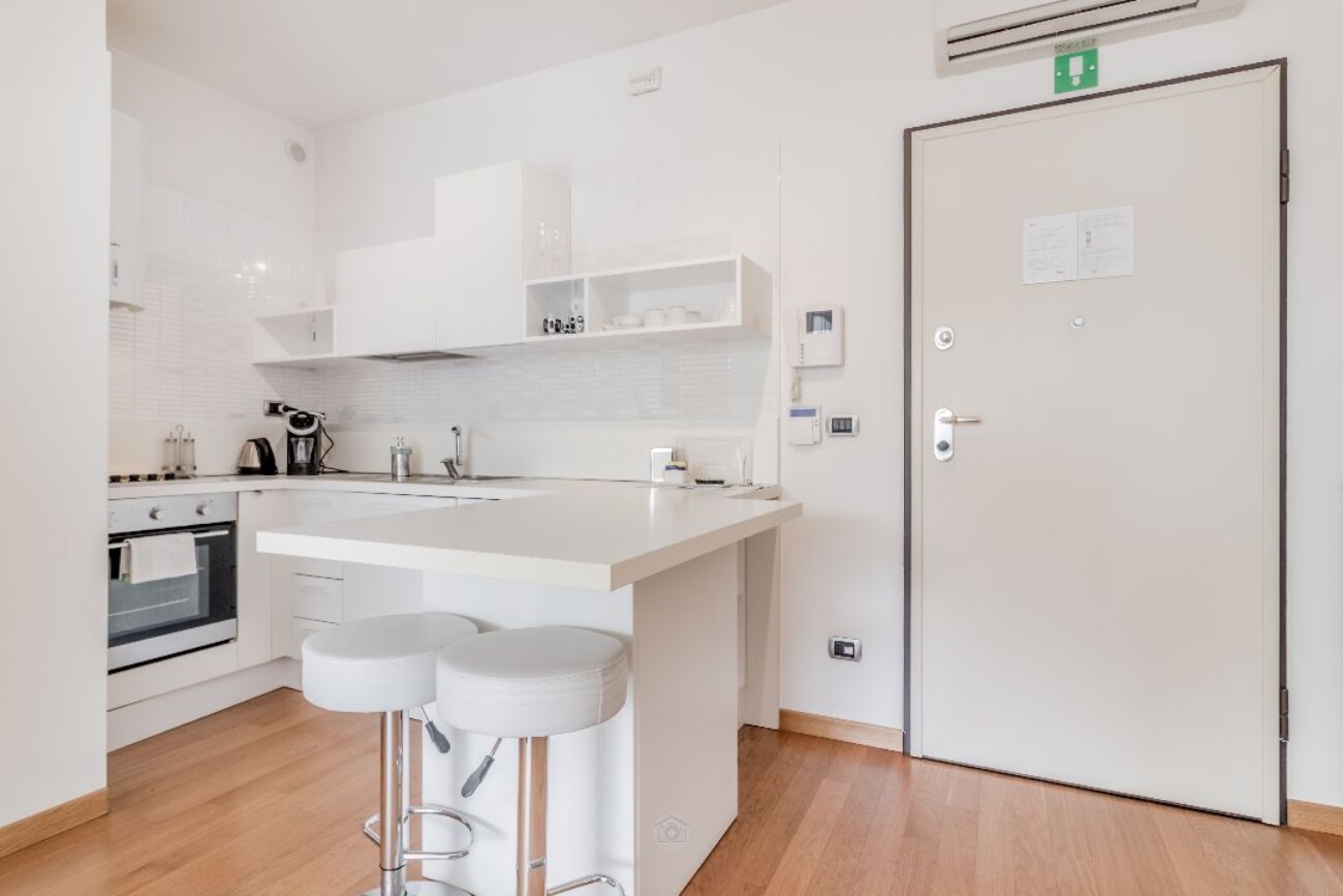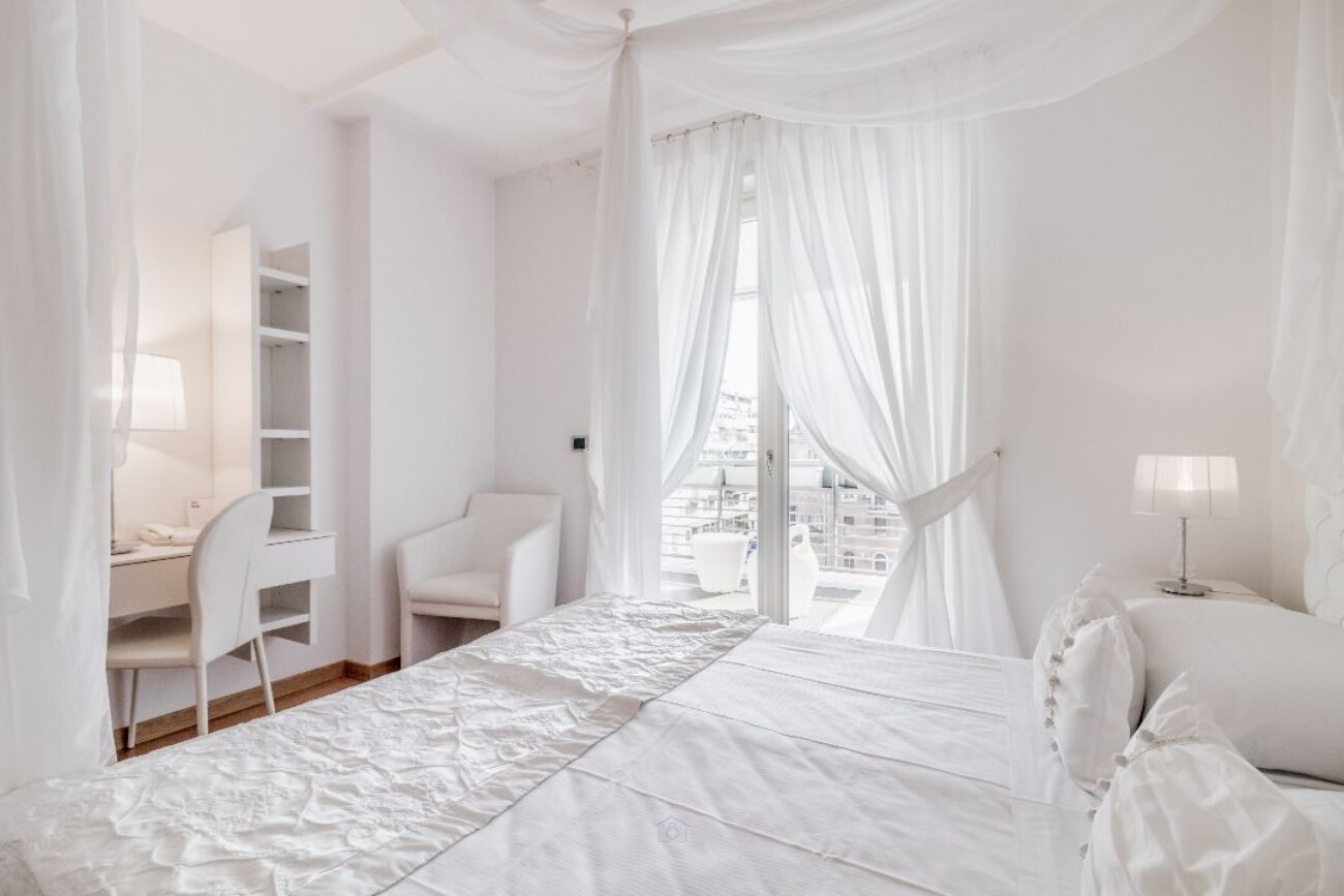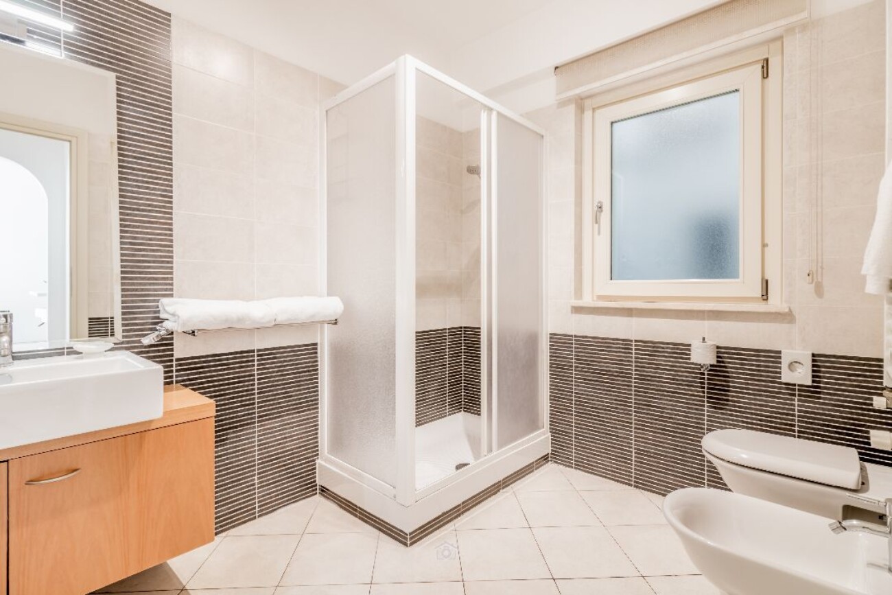L’appartamento è composto da soggiorno con angolo cottura, camera da letto, ampio bagno con doccia e finestra, terrazzo abitabile di circa 25 mq. L’appartamento è dotato di rifiniture di pregio: aria condizionata, parquet in tutte le stanze, impianto allarme, portone blindato, impianto di riscaldamento autonomo con caldaia di ultima generazione con doppia alimentazione (metano e solare), videocitofono.