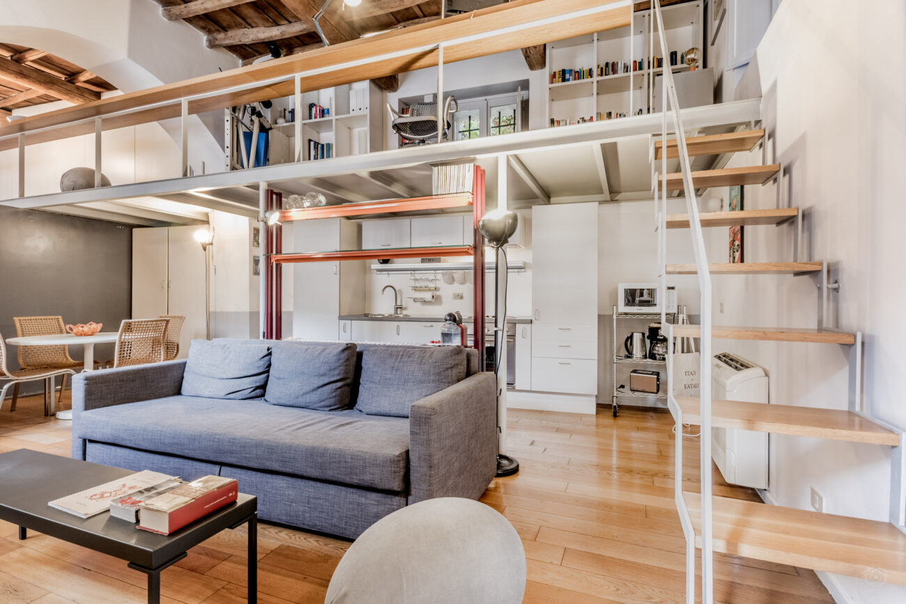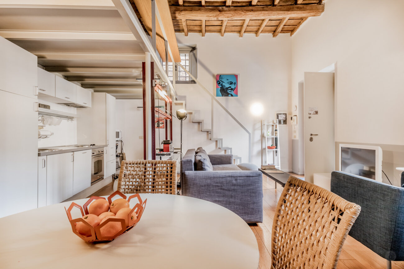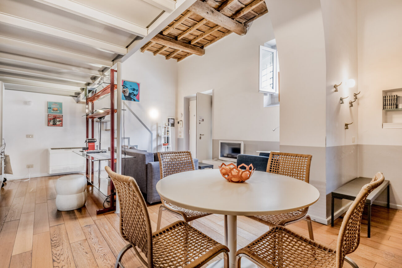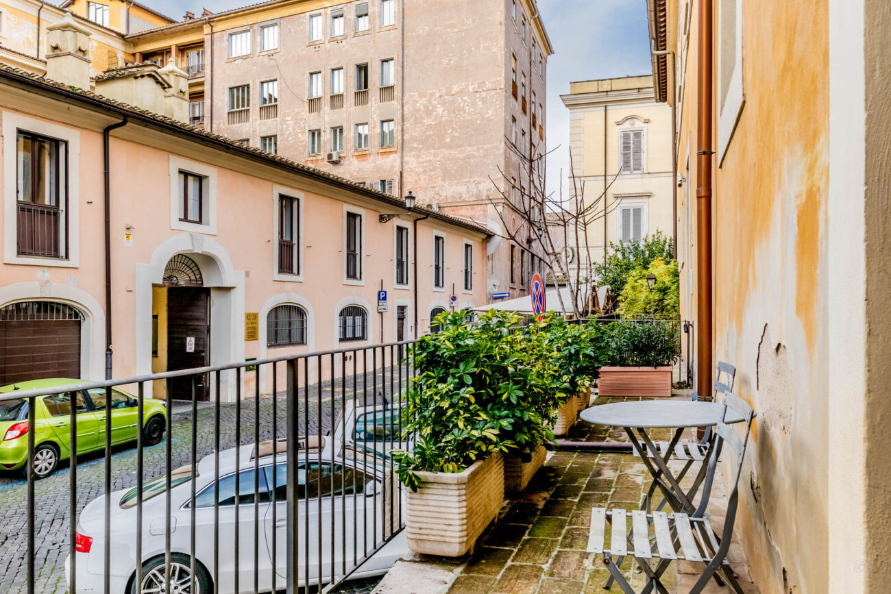 In palazzetto del ‘700 nel rione di Trastevere, nelle immediate vicinanze della Basilica di Santa Cecilia, in un area di grande rilevanza storica e ricca di testimonianze. La parte più tranquilla e caratteristica del quartiere e la più amata dagli artisti Romani.